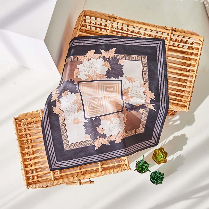 JINJU ATELIER 'PEONY FLOWER' SILK MINI SQUARE SCARF